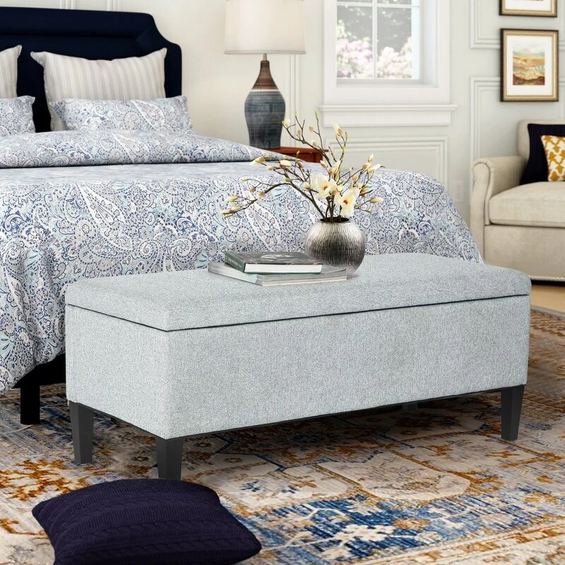 STURDY AND ANTI-SLIP: Sturdy frame and wooden legs, ensuring long-lasting using. The legs with anti- skidding foot pads prevent sliding while protecting your floors from scuffs and scratches. Our storage ottoman is a useful and attractive addition to any room.