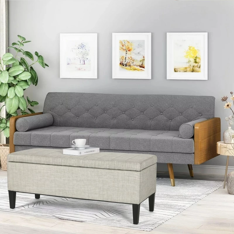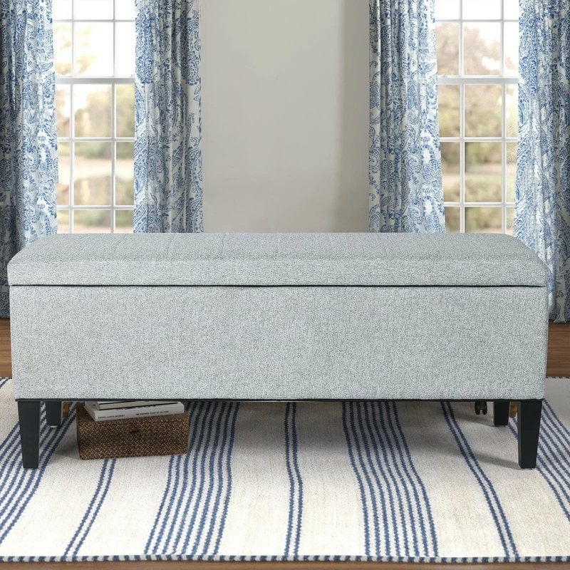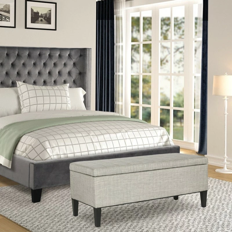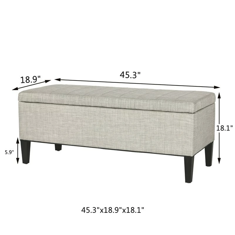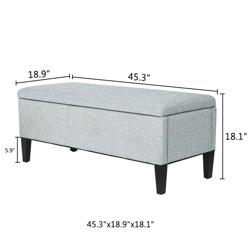 OTTOMAN DIMENSIONS: 45.3 x 18.9 x 18.1 inches, the legs height: 5.9”. Required Assembly. Storage space: 40.9 x 14.96 x 9.4 inches. Pretty color with black wood legs, match your furniture like sofa, bed, arm chair as well as your home decor.