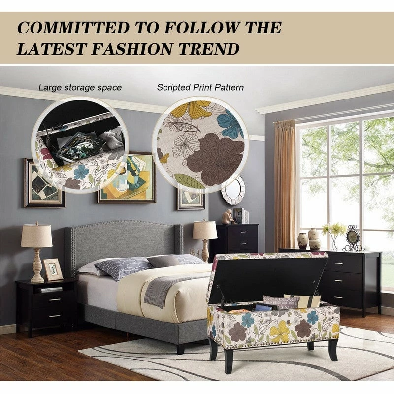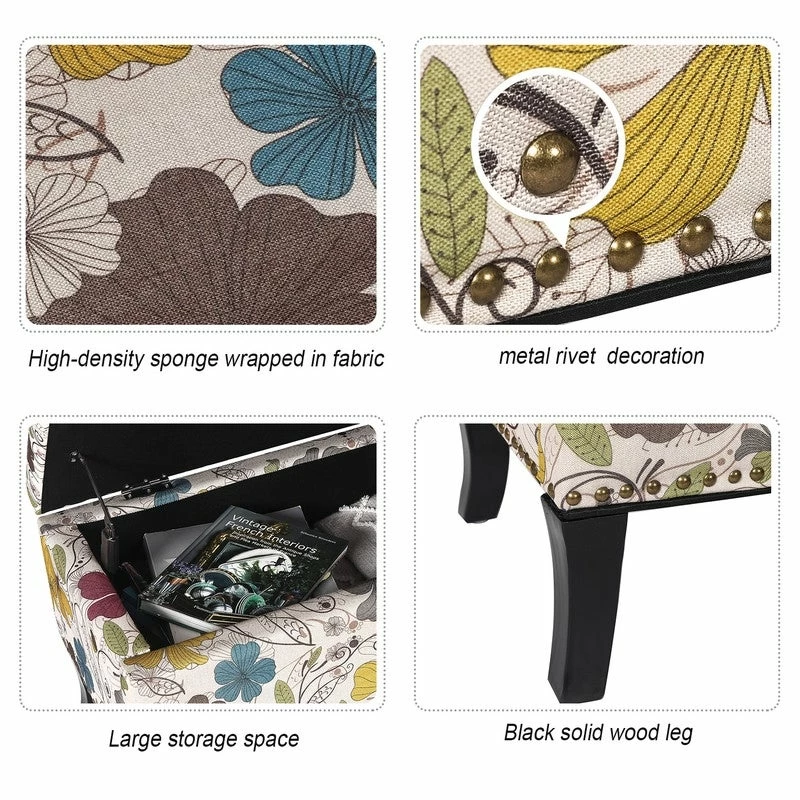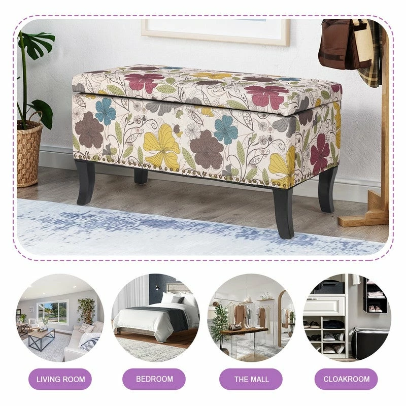 【MULTI-FUNCTIONAL HIDDEN STORAGE PIECE】Featuring with hidden storage, beautiful Floral Printed design and thick upholstered padded on the top, it adds great texture and style to any room, attractive and completes your good looking home decor, works very well as the footstool to ease your tired feet and additional seating for your guest.