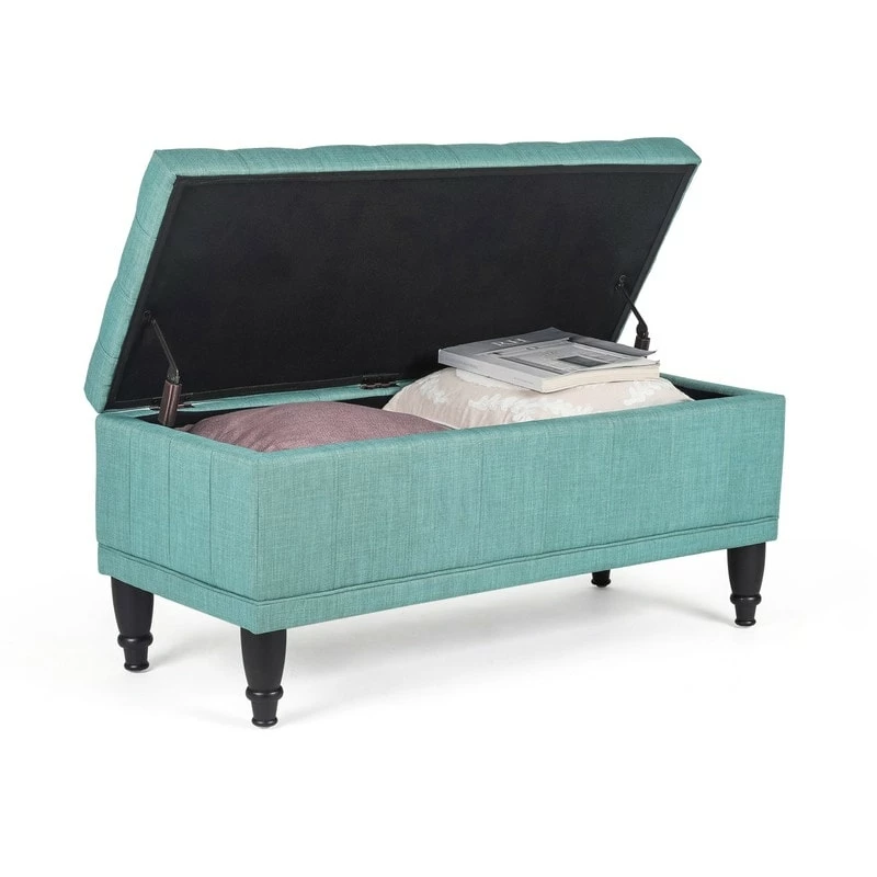 Lend form and functionality to any space with the chic form and hidden storage space of this ottoman. The thick, rugged upholstery is smooth and soft for a cozy extra seat, paired with padding for comfort. The top lifts to reveal hidden storage space perfect for tucking away blankets, magazines, and other necessities.