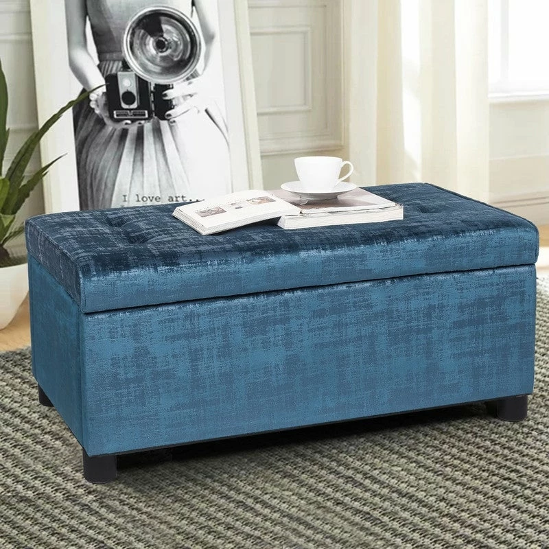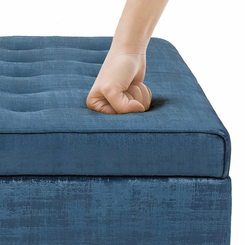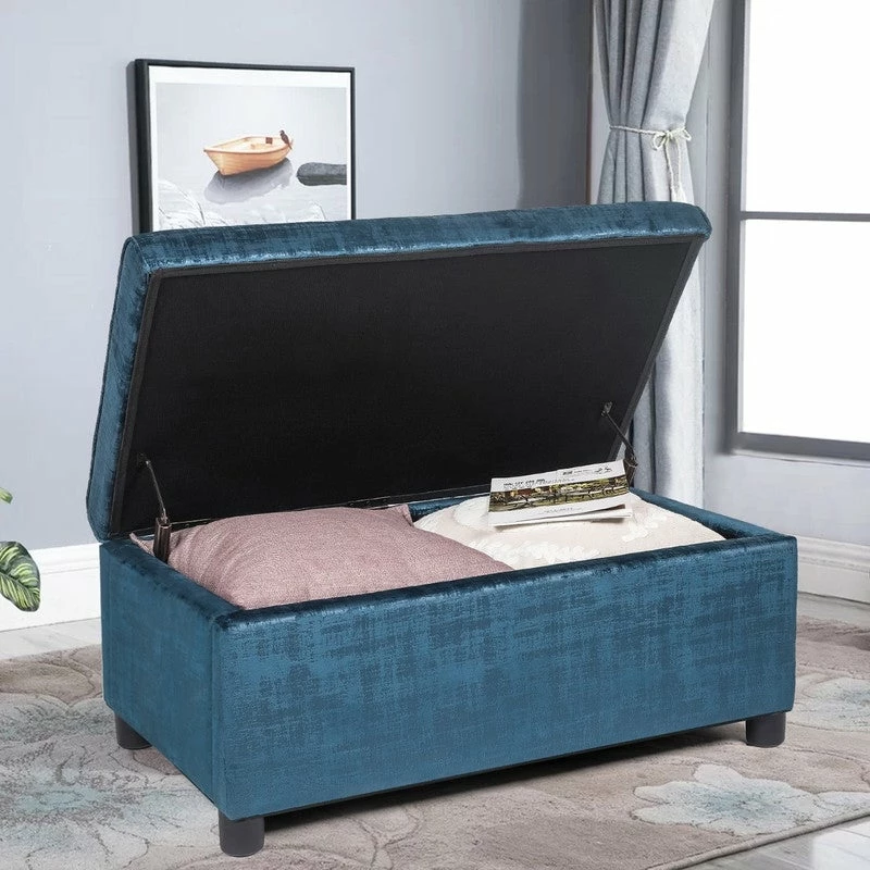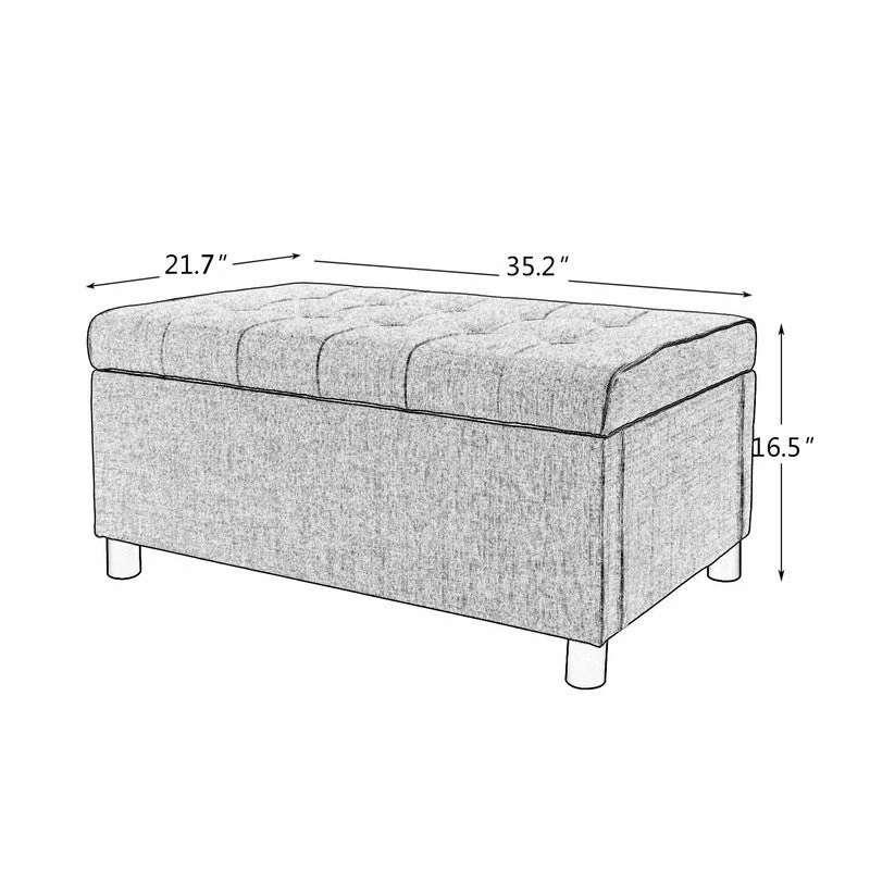 โข MULTI-FUNCTIONAL BENCH: This item is a storage ottoman,end of bed bench,living room bench ,extra seat or entryway bench. It can also replace your sofa or sofa table.โข Product Dimensions: 41.5″D x 18.1″W x 17.7″Hโข SOFT AND COMFORTABLE: The rectangular storage ottoman bench is filled with high elastic sponge to relieve the fatigue of sitting for a long time. And the ottoman is covered with soft fabric, is very comfortable to sit on it.โข LARGE STORAGE SPACE: This 35.2″ long storage bench has a big space to store your blankets,pillows,cloths,books,kid’s toys,etc.โข STURDY & SAFETY: Wood frame and safety hinge ensure that this ottoman has a long service life and is safe for children, and will not pinch their fingers.โข DIY ASSEMBLY: You will receive all the parts, You can follow the manual and installation video to assemble them (about 10-15 minutes).