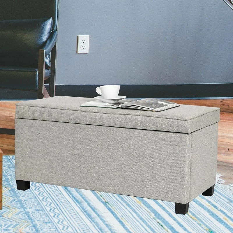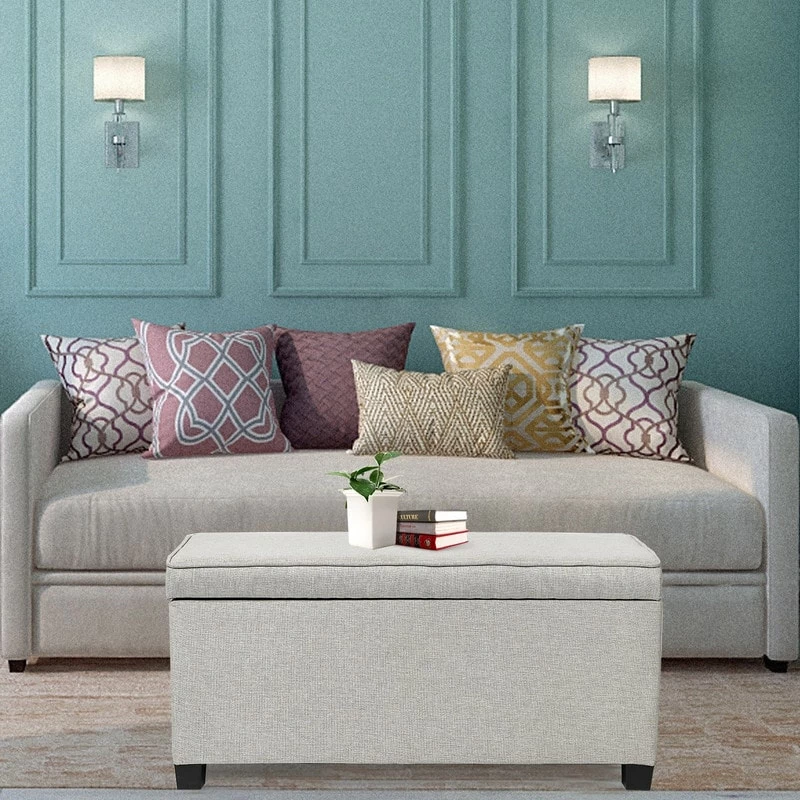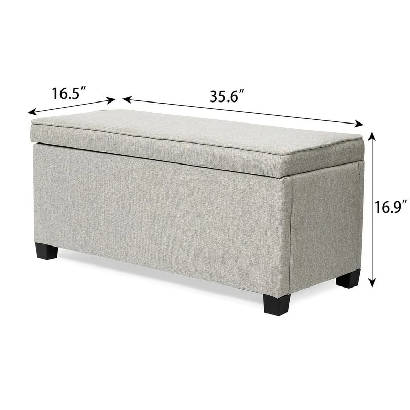 PRODUCT DIMENSION-35.6″(D) x 16.5″(W) x 16.9″(H)SKIN-FRIENDLY PLUSH CUSHION-Supple fabric upholstery over a high-resiliency foam cushion is such a relaxation for your tired feet.MODERN STORAGE BENCH- Perfect rectangular storage ottoman bench with plenty of storage rooms allows you to organize your household items, tufted upholstered top provides comfortable seating for your.STURDY CONSTRUCTION- Made with durable wood frame and safety hinge for the lift-up lid, designed for long and lasting use.EASY TO INSTALL AND DISASSEMBLE- The Storage ottoman bench comes with all parts including all hardware.
