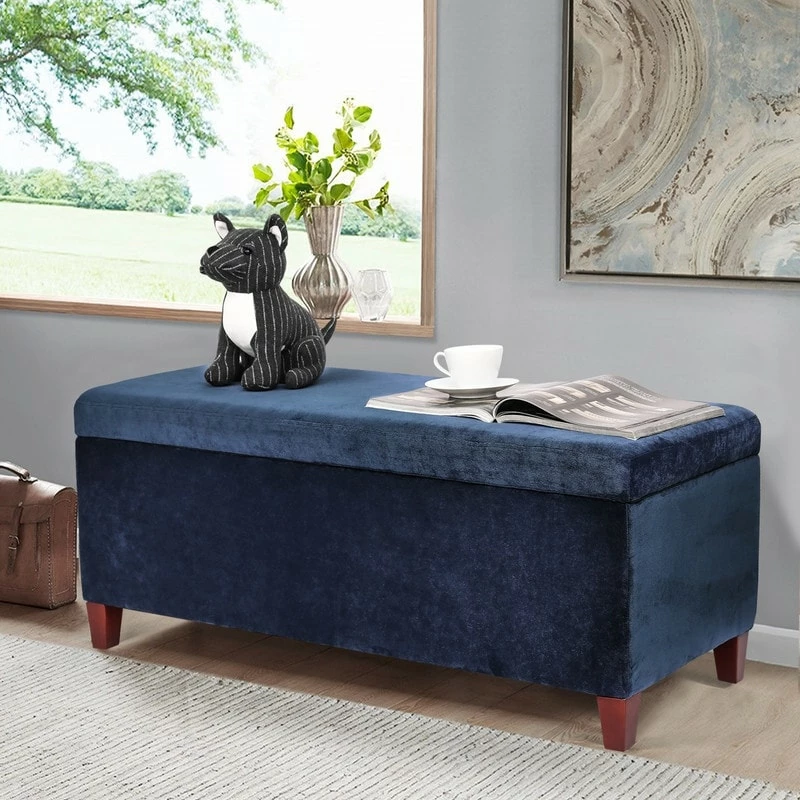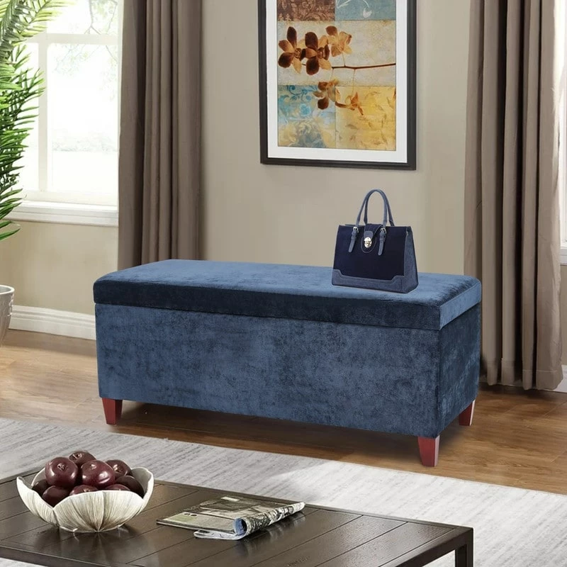 LARGE STORAGE: 42.1″ (D) x 17.7″ (W) x (17.7″ -22.8″) (H). The height is adjustable to meet different needs. The internal dimensions are 39″(D)x 15.4″(W)x 10.6″(H) for storage.The extra hidden storage space also allows you to organize small household items and store extra pillows or blankets in the bedroom or family room.LIFTING TOP DESIGN:Rectangular storage footstool is very suitable for the coffee table in the living room and the storage stool at the end of the bed. With lifting roof design, it can be easily opened and pulled forward.STABLE AND DURABLE: Our ottoman made with thick upholstery padding, sturdy solid wood legs and and safety lift top hinge, designed for long and lasting use.Durable solid wood legs can withstand a weight of 300 pounds.MULTI-FUNCTIONAL OTTOMAN :Featuring with simple beige color, brings a textured look and stylish touch to any room, great fit for your home decor, also works very well as footstool to ease your tired feet, storage chest, additional seating for your guest, and hidden storage allows you to organize your small household items, store extra pillows or blankets in your bedroom or family room.REQUIRES SLIGHT ASSEMBLY :Legs are hidden in the storage space of the footrest. Just twist 4 legs to use.
