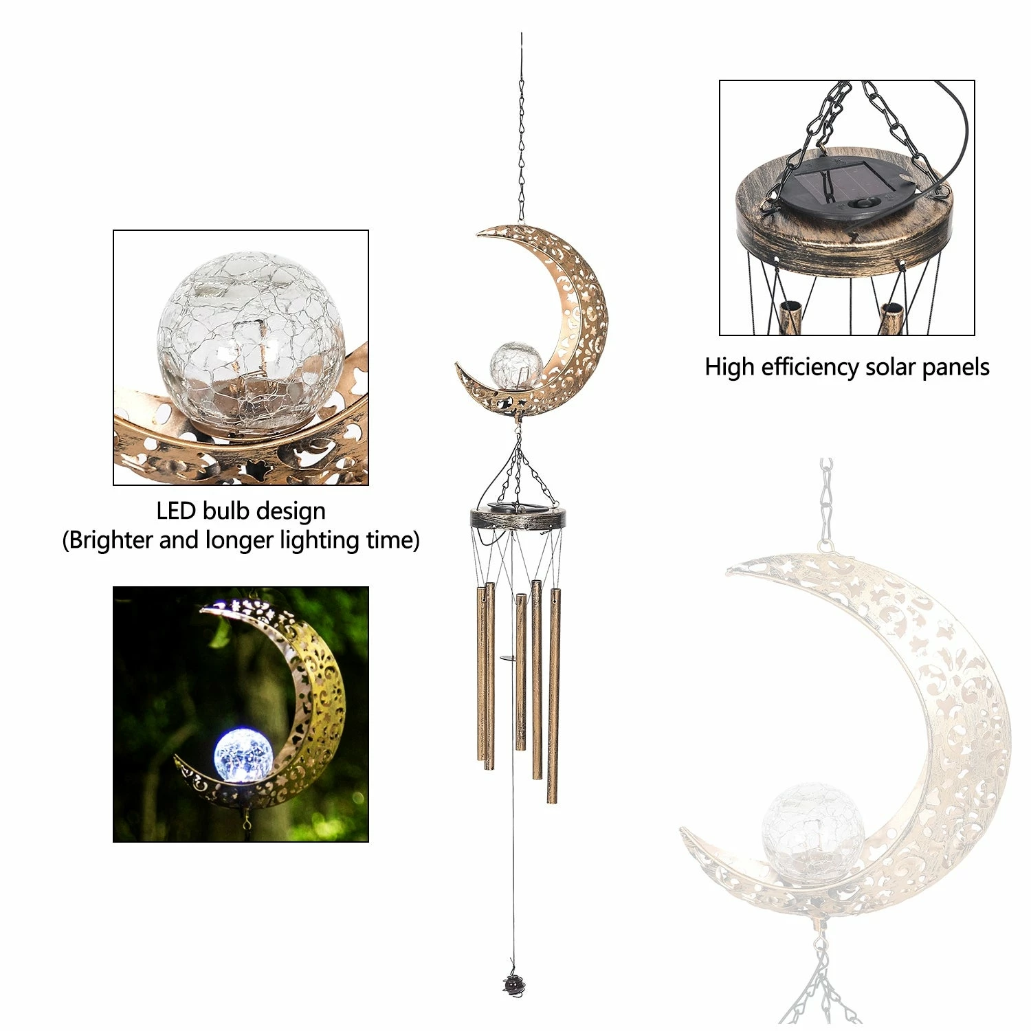 - HIGH QUALITY – Moon wind chime is made of high quality iron and glass. The structure is sturdy and durable, waterproof and windproof. It is easy to install, bringing a lasting beauty of music.