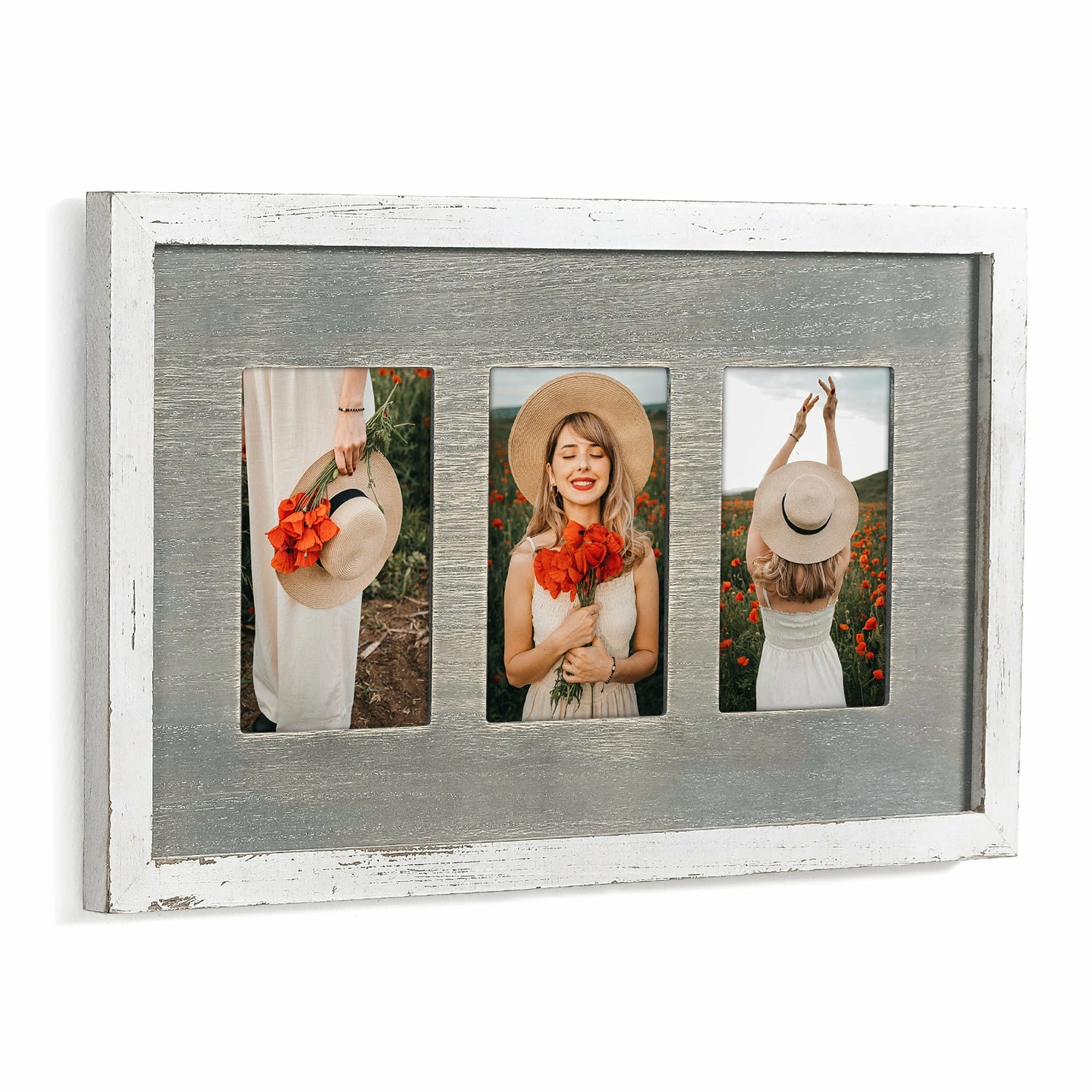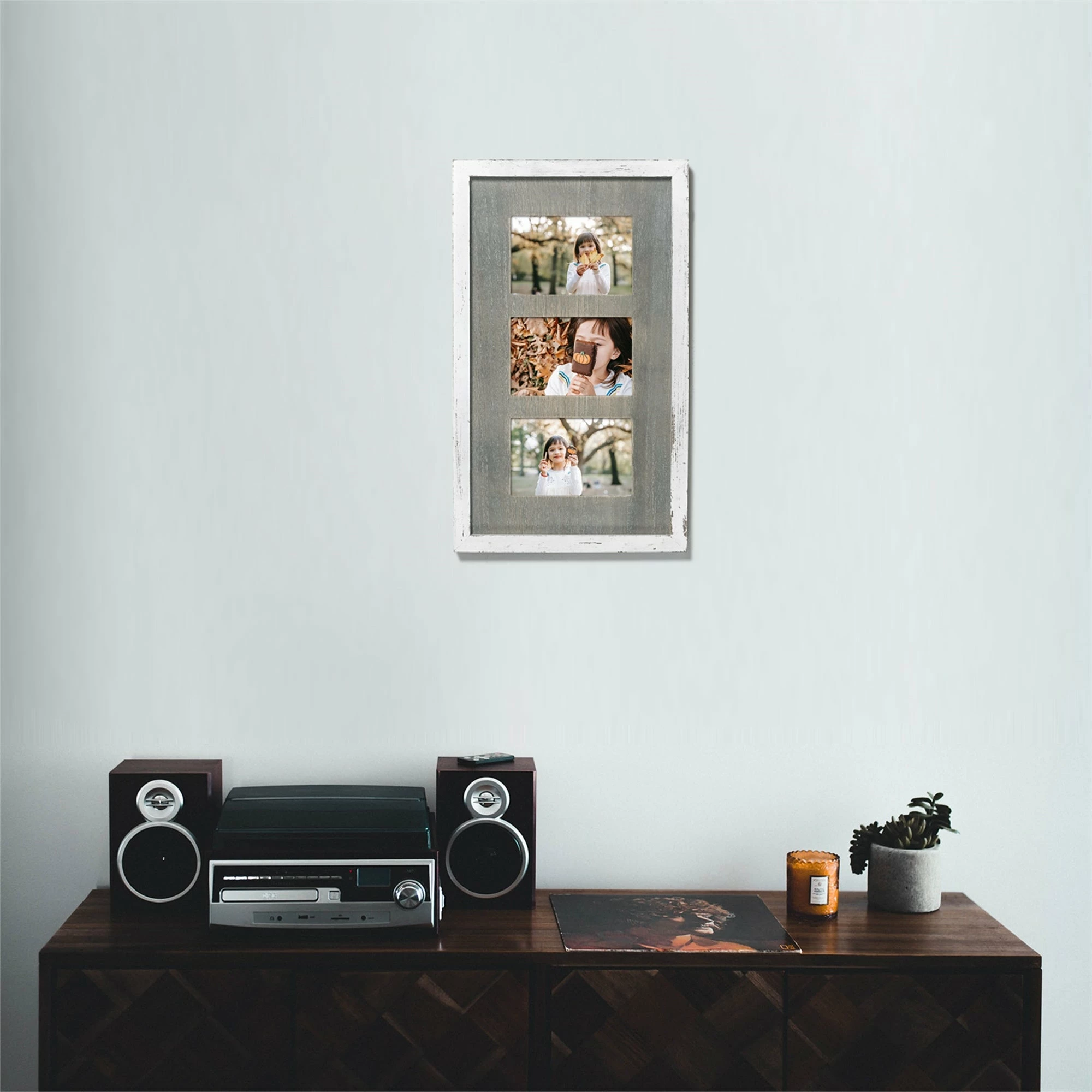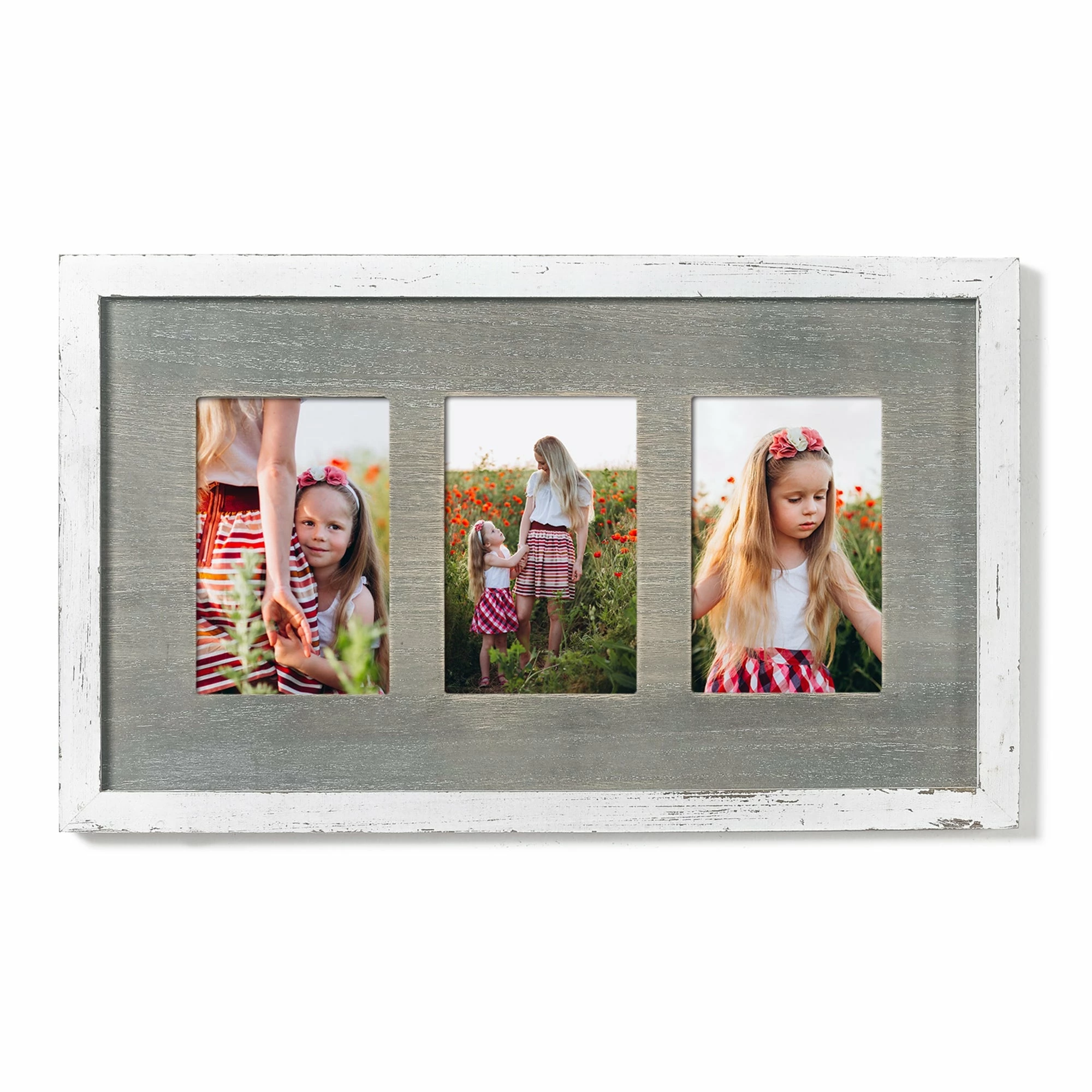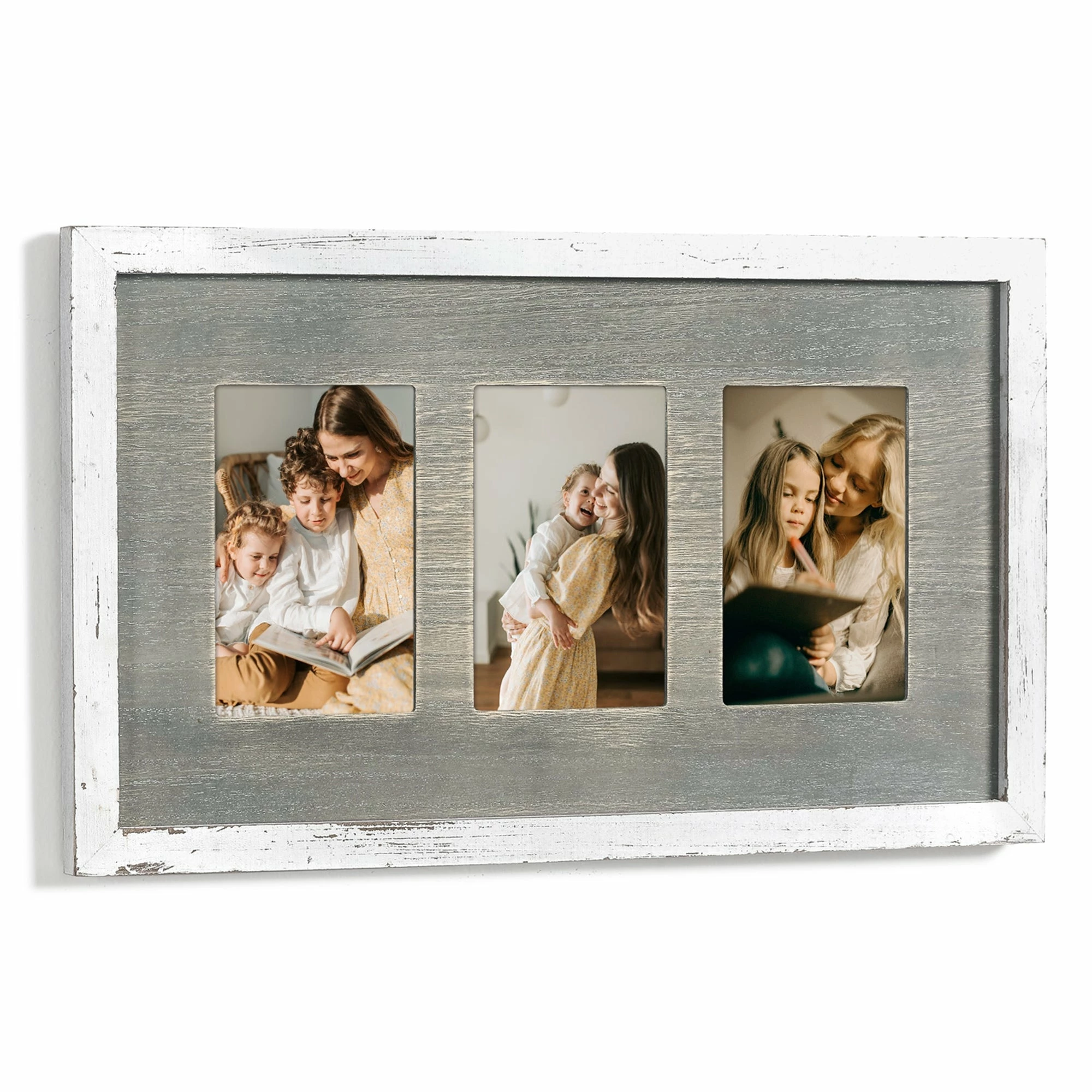 Ideal for spaces with contemporary style decor, this stylish photo frame allows you to display photos of your entire family. Made of wood, this frame has three spaces for 4×6 photos. Great for collecting your memories as well as decorating your room.