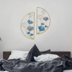 New โ Adeco Metal Ginkgo Leaves Wall Decor Set Of 2 Half Moon Wall Sculpture Blue ๐ฏ