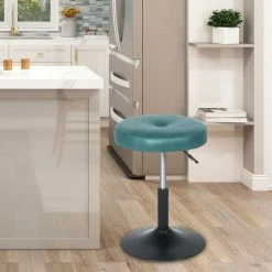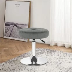 Outlet 🔥 Adeco Adjustable Velvet Round Ottoman Swivel Vanity Stool Makeup Chair Pink 🧨