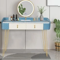 Cheap 😍 Adeco Vanity Makeup Table With 2 Drawers Organizer 👗 Dressing Shelves – Large Blue 😍