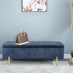 Cheapest โ๏ธ Adeco Storage Ottoman Faux Leather Button Tufted Bench Rectangle Footrest Blue ๐คฉ