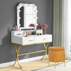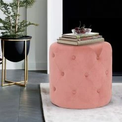 Discount โ๏ธ Adeco Round Storage Ottoman With Removable Lid, Vanity Velvet Footrest โ