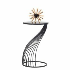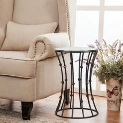 Hot Sale 😀 Adeco Drum Black Metal Coffee Table Round End Table With Glass Top – 15″x 15″x 21.5″ 🎁