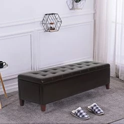 Hot Sale 🔔 Adeco Distressed Faux Leather / Tufted Velvet Storage Ottoman Bench Navy Velvet 🤩