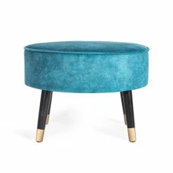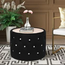 Hot Sale 🔔 Adeco Round Ottoman Velvet Footrest Stool Modern Padded Seat Footstool Orange 🔔