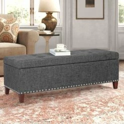 Outlet ๐ฏ Adeco Storage Ottoman Tufted Fabric Bench DIY Assembly Required Dark Grey โค๏ธ