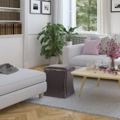 Budget 👍 Adeco 15″ Vanity Stool Ottoman- Small Ottoman Footrest Stool Makeup Chair Brown 💯
