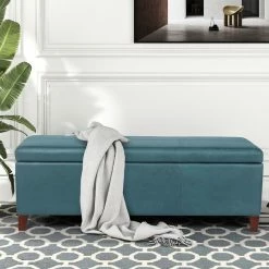 Brand new 🤩 Adeco Storage Ottoman Bench Rectangular Foot Rest Stool Leathaire Fabric Blue 🥰