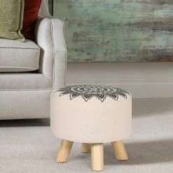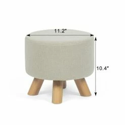 Hot Sale ๐ Adeco Asense Round Ottoman Foot Rest Stool Linen Fabric Padded (Set Of 4) Beige ๐ฏ