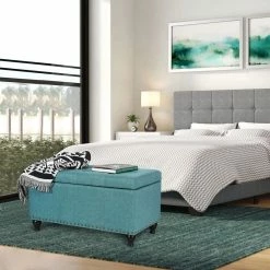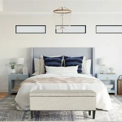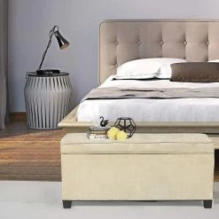 New ๐ Adeco Storage Ottoman Linen Rectangular Entryway End Of Bed Bench DIY Assemble Beige โ๏ธ