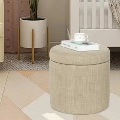 Deals ๐ Adeco Round Storage Ottoman, Fabric Stool Footrest With Removable Lid Black ๐