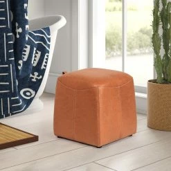 Flash Sale 😉 Adeco Small Ottoman Foot Rest Stool With Drawstring Dark Orange 👍