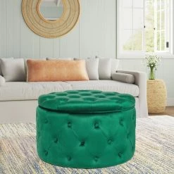 Flash Sale ๐ Adeco Round Velvet Storage Ottoman, Button Tufted Footrest Footstool Green ๐ฅฐ