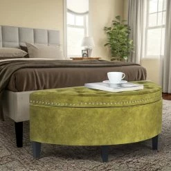 New ๐ Adeco Storage Ottoman Seat Stool Velvet End Side Table Accent Wood Lid Green ๐