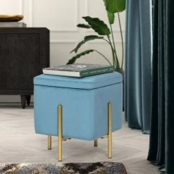 Best reviews of ๐ฅ Adeco Round Storage Ottoman Footrest Stool Velvet Gold Plating Base Blue ๐